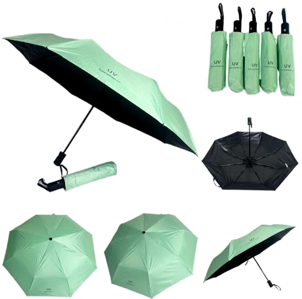 Diameter 98cm, Bahan Anti UV Lapisan Hitam, Rangka Kuat, Buka dan Tutup Otomatis dengan Tombol, Panjang Lipatan 25cm, Jenis Payung Lipat 3